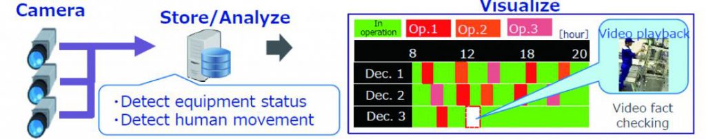 There are two fundamental challenges in data collections on a factory floor. One is that old equipment often requires expensive modification. The other is the difficulty in collecting data regarding how workers move and operate on a factory floor. Visual Analyzer uses AI video analysis technology to extract and visualize operation information and stopping factors from camera images. For example, Visual Analyzer can automate time measurement for preparation-work to detect operation time-out and time-dispersion. For example, Visual Analyzer can automate the time measurement of setup work, detect excess work time and variation, and look back at those images to check the cause.